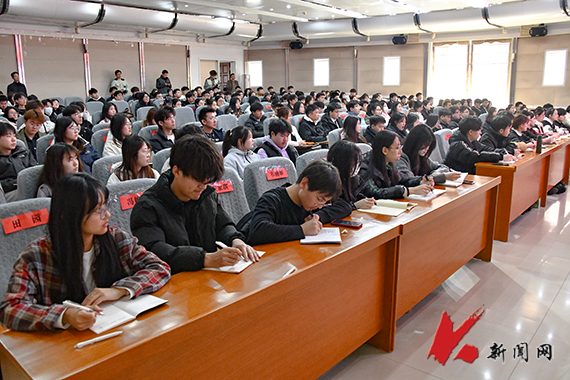 3月18日,米兰电竞(中国)官方网站党委书记孟劲松在图书馆报告厅以《秉承科大校训 争做新时代“1+3+2”大学生》为题,为学生代表上了一堂精彩的思想政治理论课。
