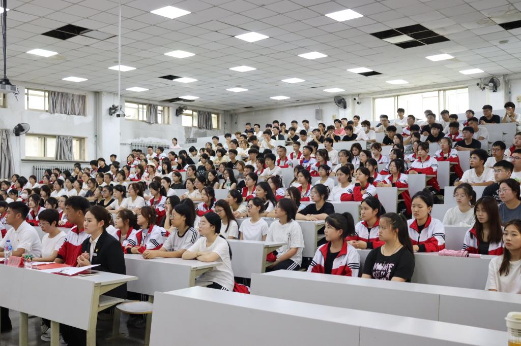 在庄严雄壮的国歌声中,全体师生整装肃立,开学典礼正式拉开序幕。院长郭浩淼首先代表学院向2024级新生的到来表示热烈的欢迎,祝贺他们开启人生新阶段;教师代表陈辛迪对新生表达了期许与祝愿,他希望同学们能学会享受大学生活,积极利用四年的时光充实自己,努力用自己的力量追寻信仰与理想;学院学生会执行主席吴雨纯作为在校生代表发言,她分享了自己几年来的经历和感受,鼓励同学们要充满好奇,斗志昂扬地探索远方的路;金融24-2班田润东作为新生代表发言,他首先分享了自己对于大学校园的初印象,同时表示在今后的大学生活中,要牢记校风校训,努力学习专业知识,提高自己的综合素质,做一个有道德、有纪律、有文化的大学生;金融24-2班薛涵竹母亲作为家长代表发言,她对学院温馨周到的迎新工作表示感谢,并希望刚刚步入大学校园的新同学们能够在这里扬帆起航,通过努力圆满完成学业,不辜负家长的殷切期望与老师的谆谆教诲;典礼最后,学院党委书记赵智博为新生寄语,他对2024级新生提出几点希望:要明确发展目标,做一个踏实进取的人;要懂得感恩,做一个体谅父母的人;是要心存敬畏,做一个能守住底线的人;要勤奋学习,做一个珍惜时间的人;要换位思考,做一个心中有爱的人;要勤于实践,做一个知行合一的人。愿同学们未来既要学好扎实的理论知识,也要具备强劲的实践能力迎接挑战,在新的征程上,乘风破浪,一路生花!