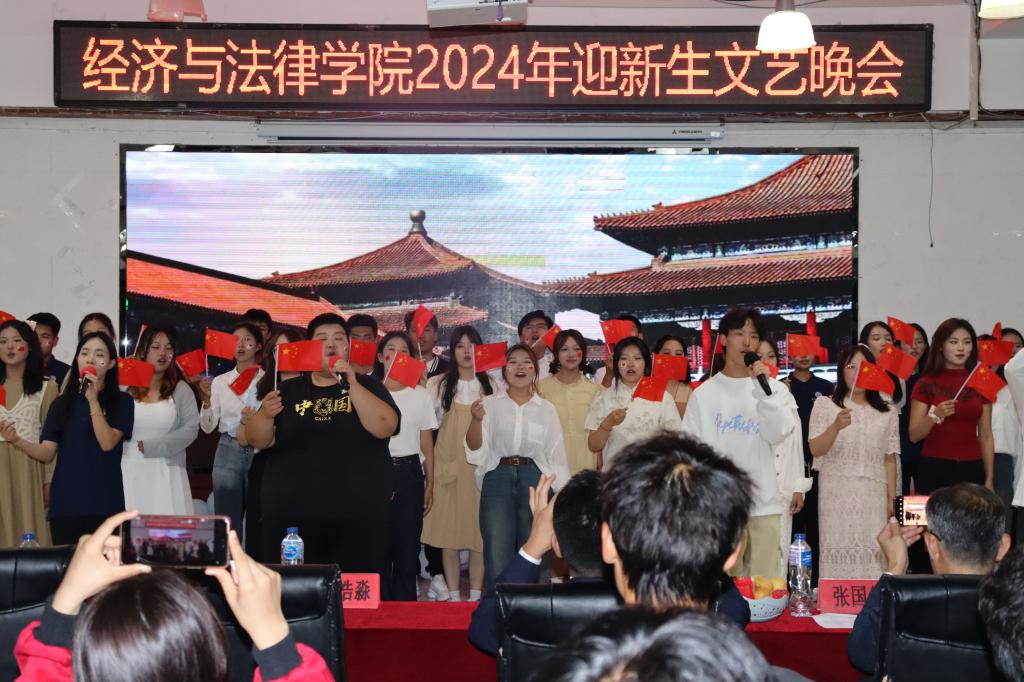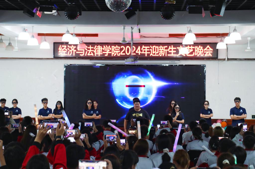 共赏中秋月,人间话团圆。9月17日晚,经法学院于明德楼大学生活动中心举办了以“中秋同国庆 师生共团圆”为主题的迎新生文艺晚会。学院党政领导及辅导员、团学骨干、新生班导生以及全体2024级新生近300人观看了本场演出。
