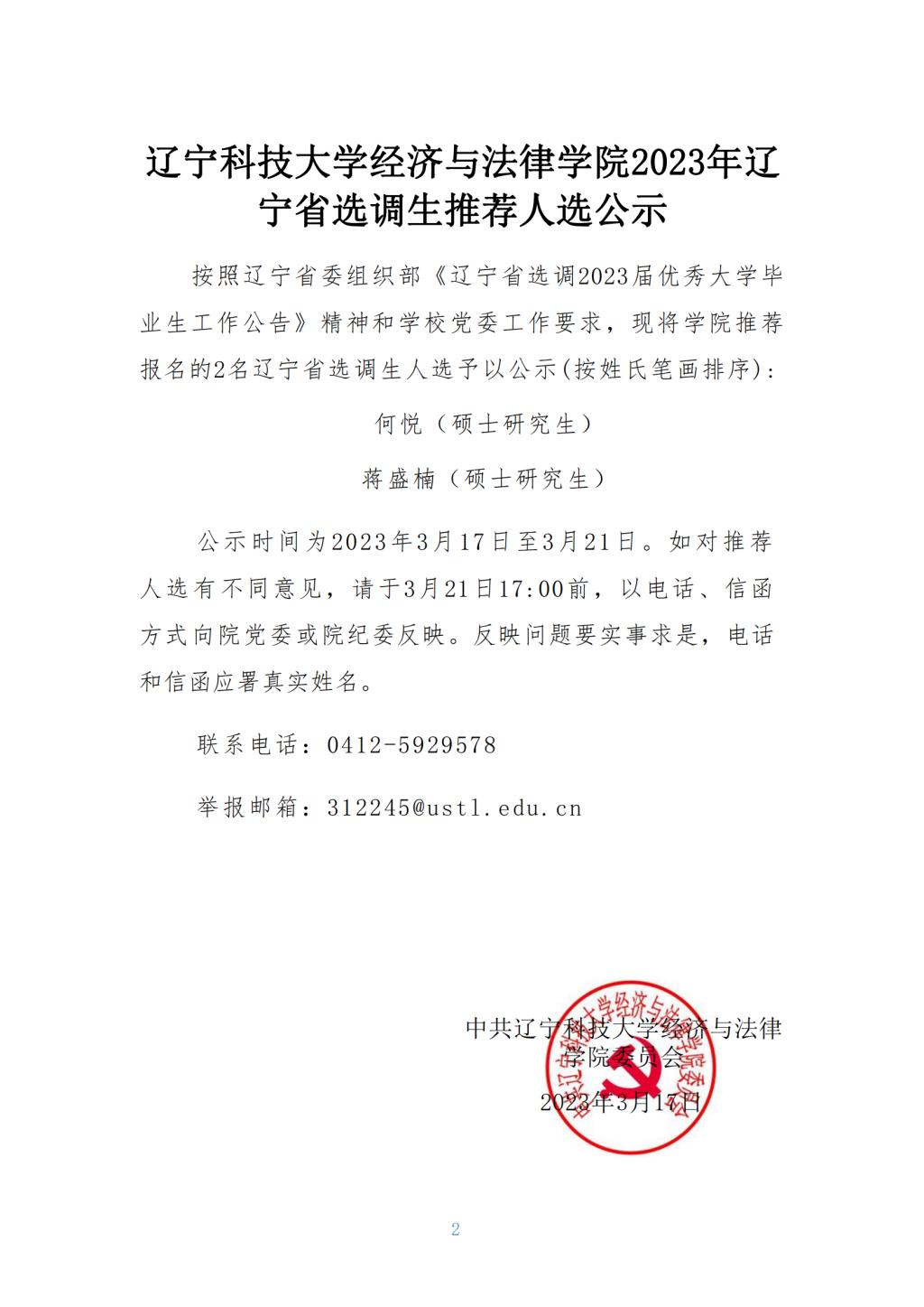 米兰电竞(中国)官方网站经法学院2023年辽宁省选调生推荐人选公示