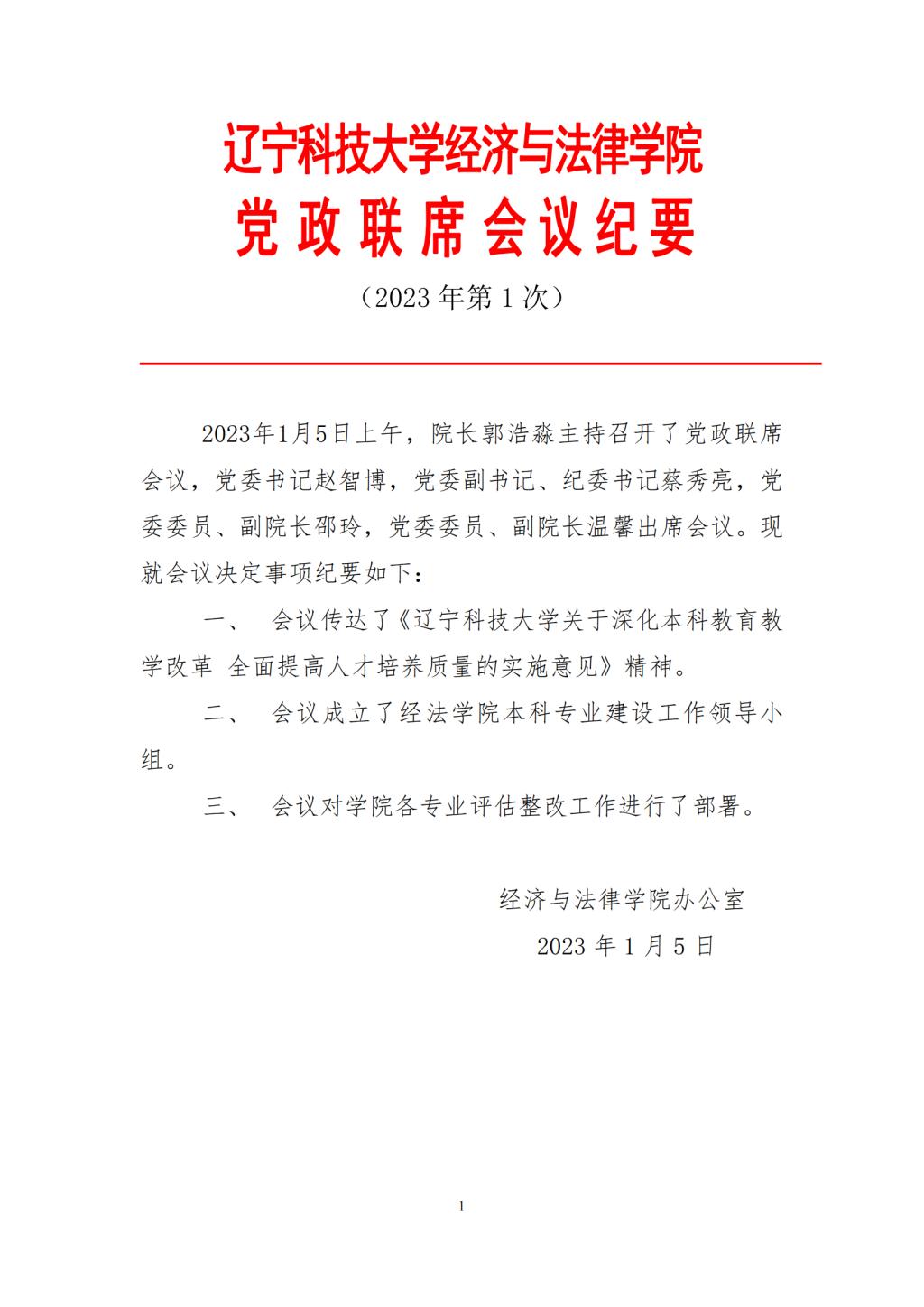 米兰电竞(中国)官方网站经济与法律学院党政联席会会议纪要(2023年第1次)