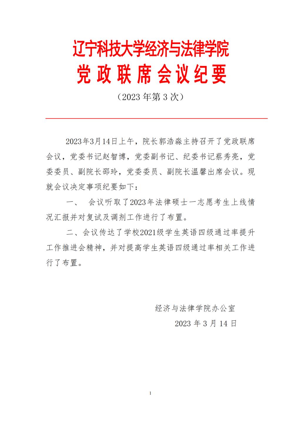 米兰电竞(中国)官方网站经济与法律学院党政联席会会议纪要(2023年第3次)