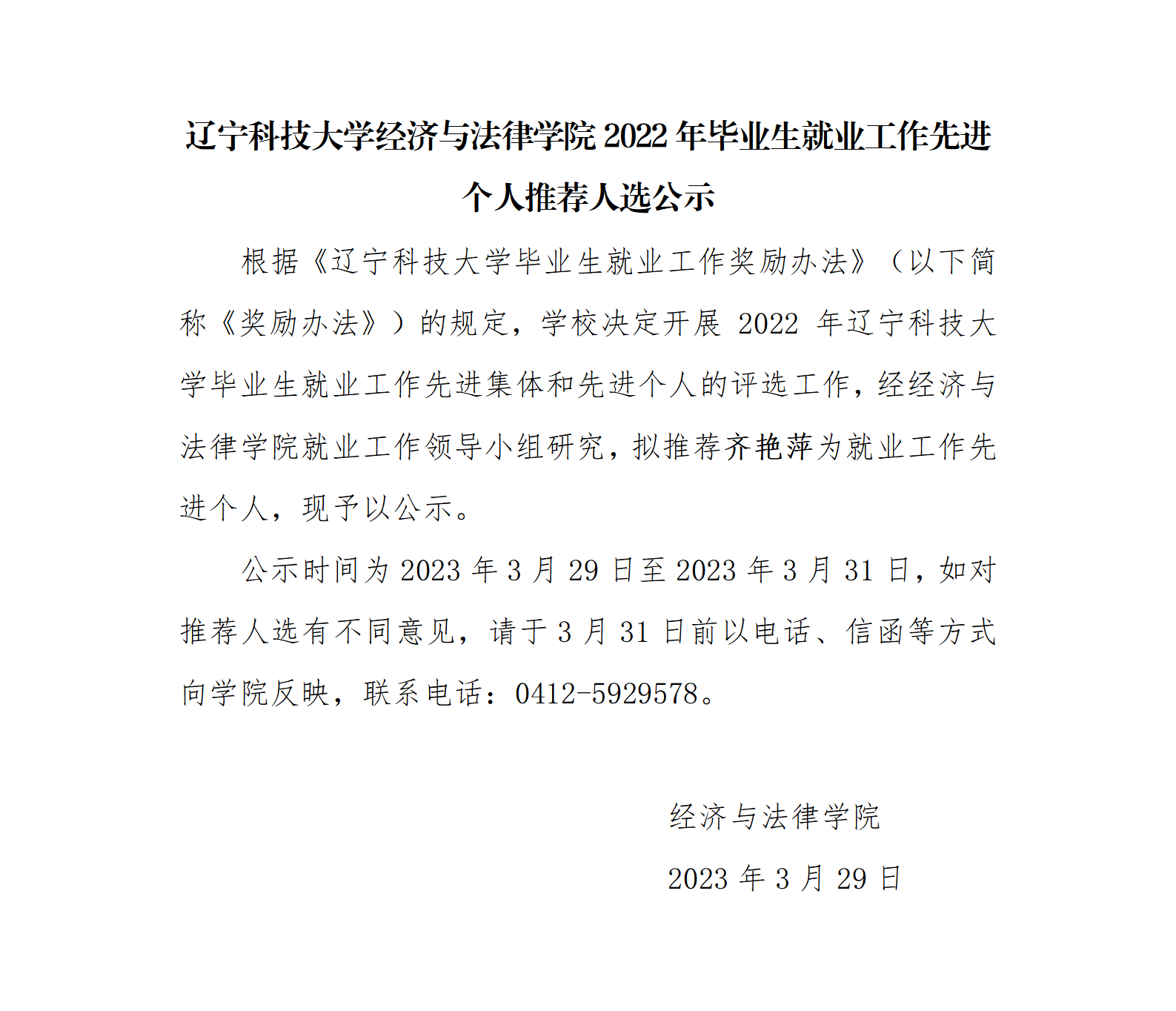 米兰电竞(中国)官方网站经济与法律学院2022年毕业生就业工作先进个人推荐人选公示