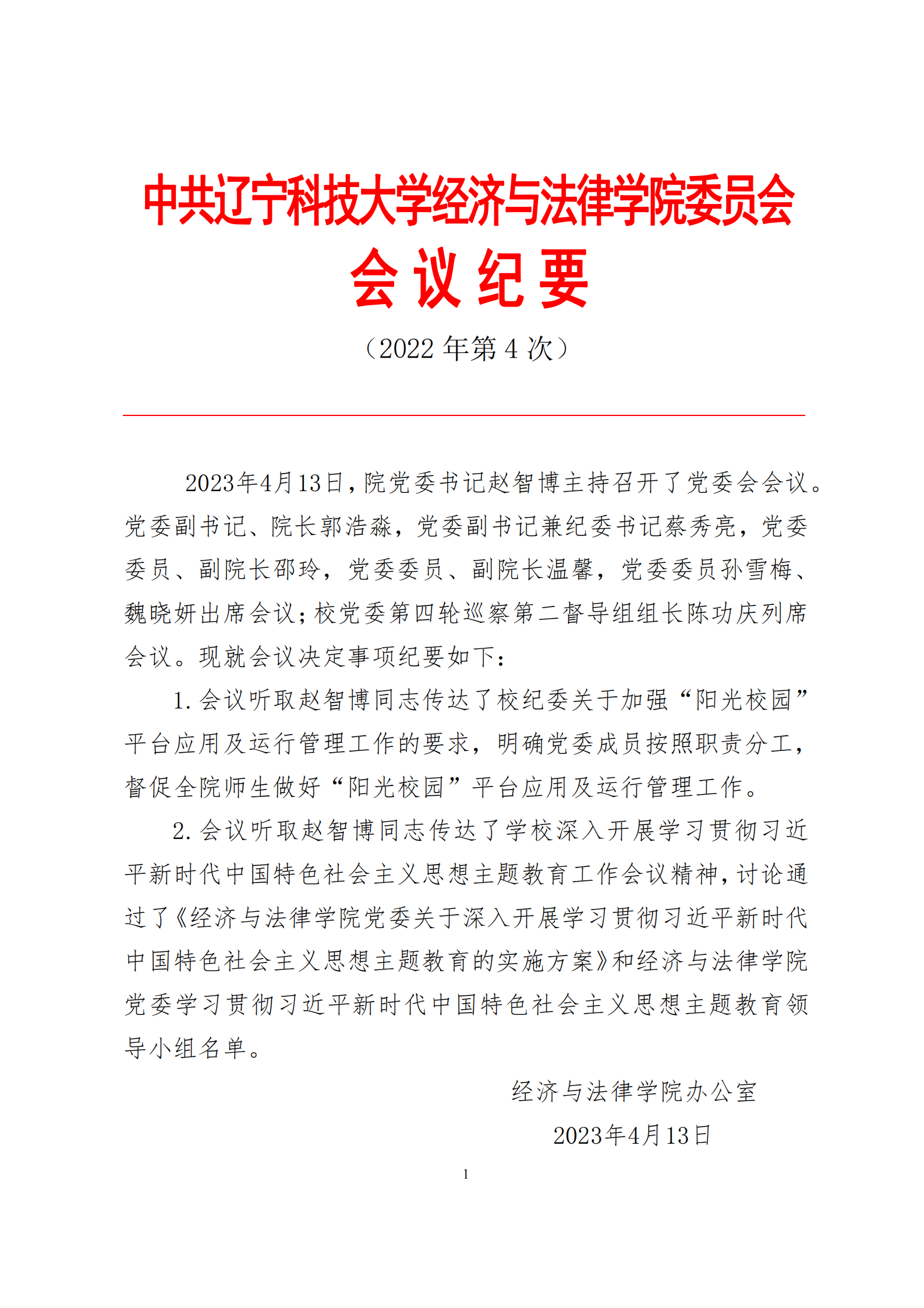 中共米兰电竞(中国)官方网站经济与法律学院委员会会议纪要(2023年第4次)