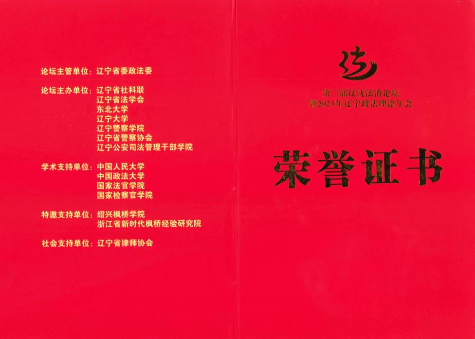 近日,在辽宁省委政法委主办的第三届“辽沈法治论坛”暨2023年辽宁政法理论年会征文活动中,经法学院法硕研究生获得佳绩。其中,由邵玲副院长所指导学生王圣傑荣获一等奖,陈辛迪老师所指导学生邱喜晨荣获二等奖。