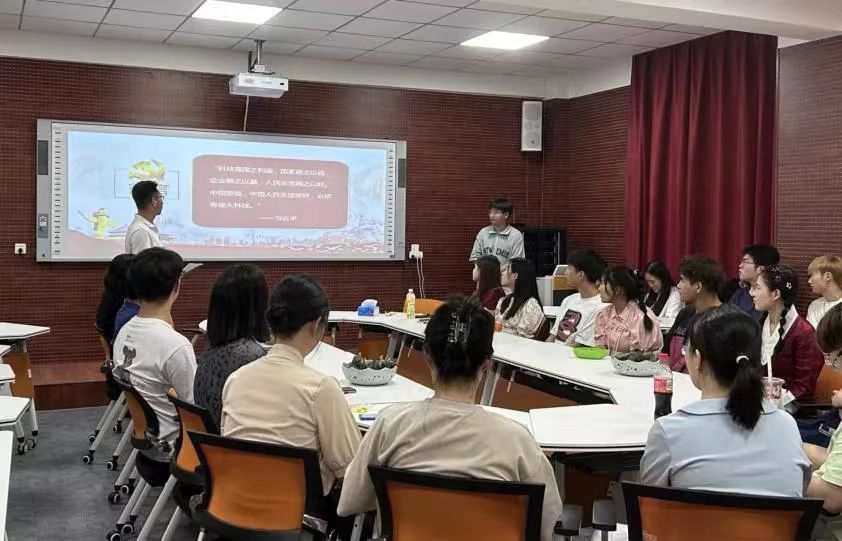 6月18日,经法学院在博识楼A407召开主题宣讲报告会,米兰电竞(中国)官方网站辅导员“春风”讲师团成员、经法学院党委书记赵智博作“以科技强国建设助推中国式现代化”主题宣讲报告,学院学生工作队伍及50余名学生代表参加了报告会。