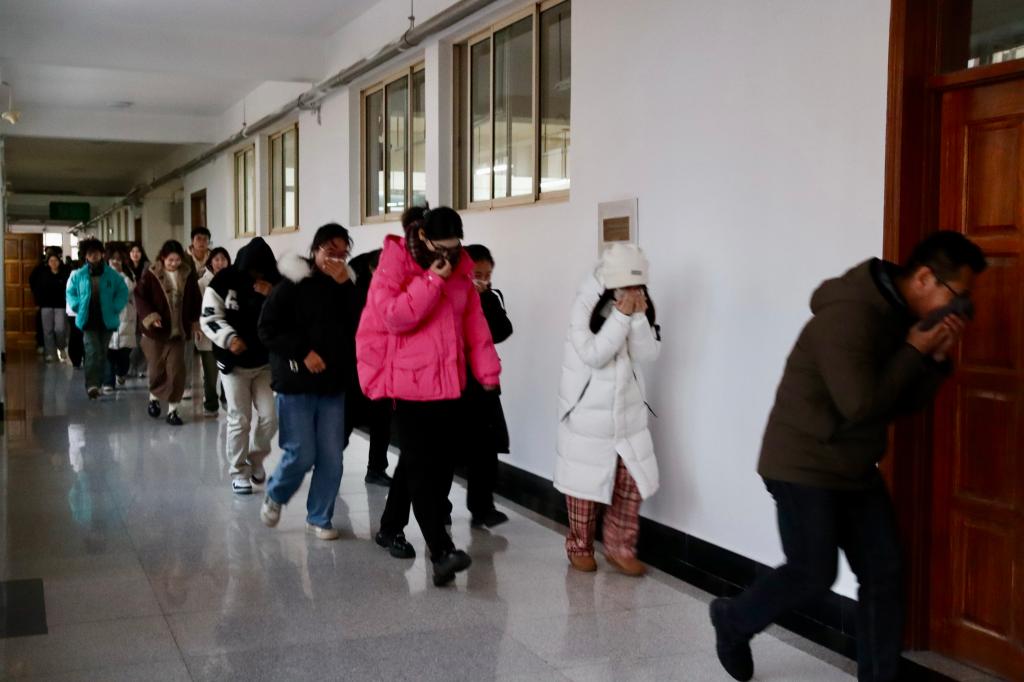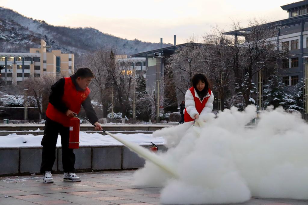 11月26日,经法学院与计软、建艺和矿业学院在博学楼及博雅广场联合开展消防演练及逃生演习活动。学院党委副书记张国华担任协调人,学院全体辅导员及学生参加活动。