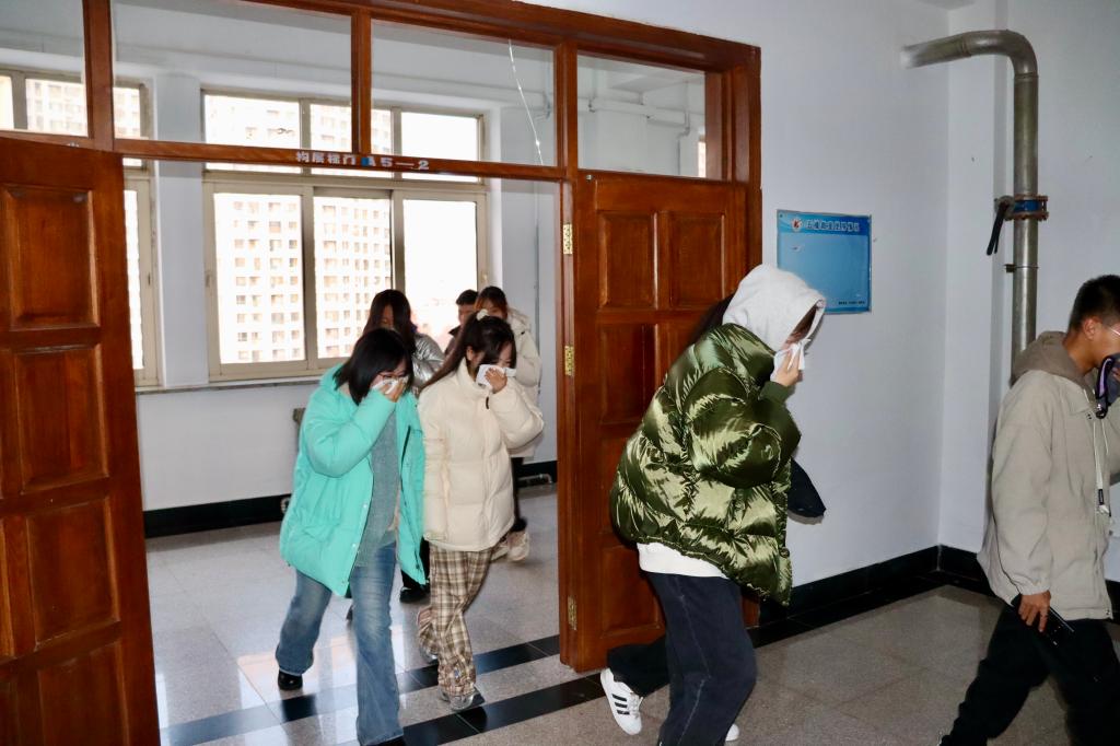 经法学院与计软、建艺、矿业学院联合开展消防演练及逃生演习