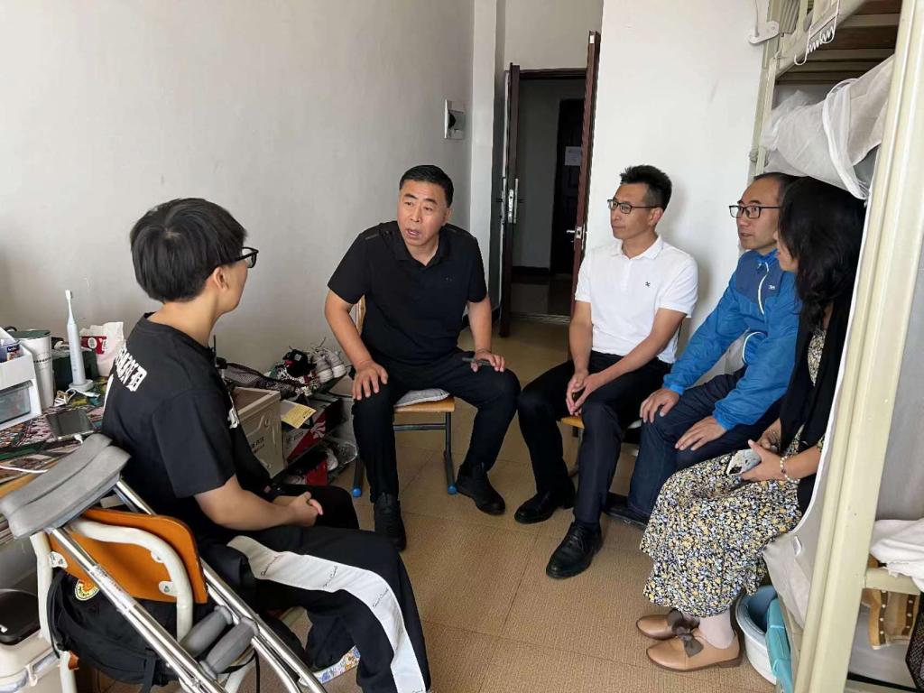 学院对有较严重疾病不适宜参加军训的同学提前进行了统计,并开好见习假条。在了解到法律硕士新生项梦舒因运动造成了脚踝骨折的情况后,学院为她安排了下铺,报到之后学院领导和辅导员带着牛奶、水果等慰问品专门到寝室去看望她,并安排了志愿者为其提供学习生活方面的帮助。