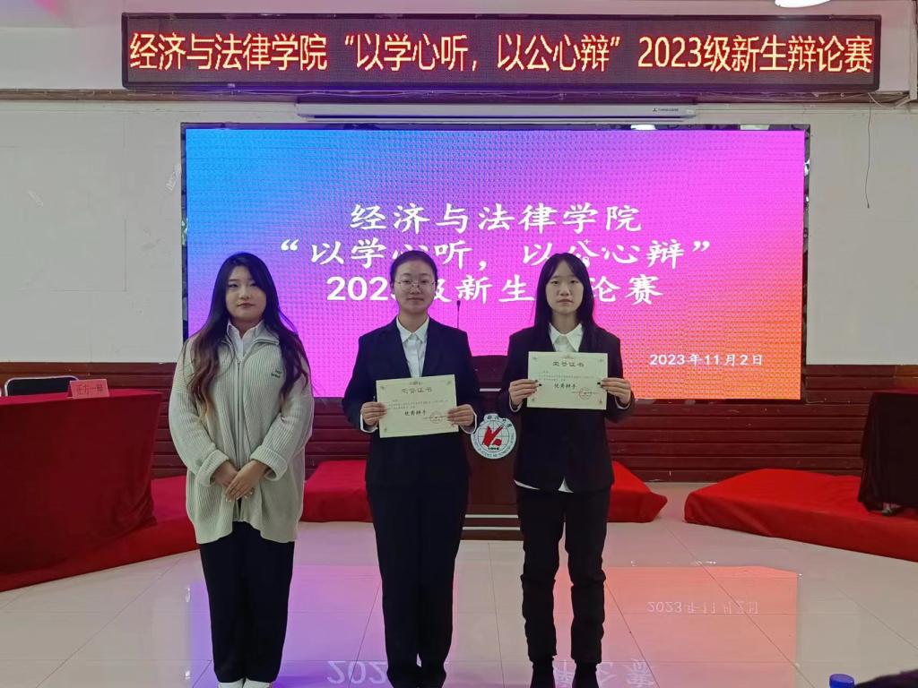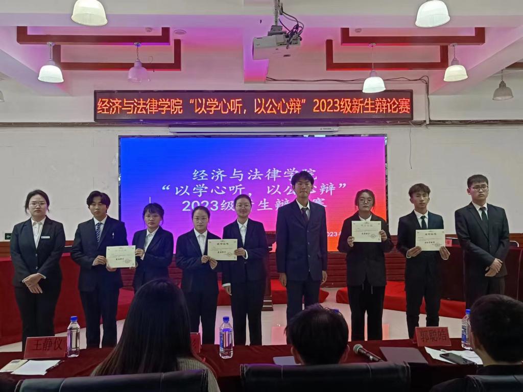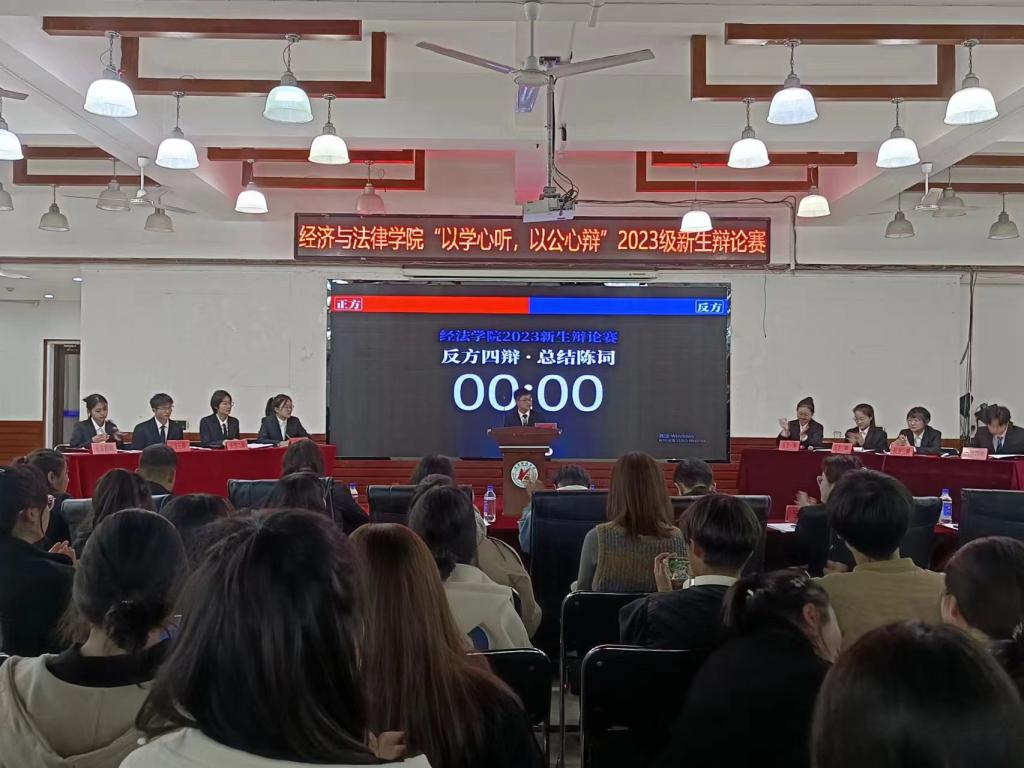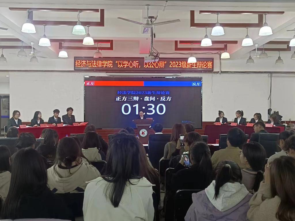 11月2日晚,经法学院于明德楼大学生活动中心举办“以学心听,以公心辩”主题辩论赛。本次辩论赛由金融23-2班白江悦主持,米兰电竞(中国)官方网站辩论队负责人、思辨社社长徐延伟、经法学院辩论队队长韩雨彤、副队长郭聪皓以及经法学院分团委副书记、学生会主席团成员和各部门负责人出席活动并担任评委,2023级全体学生参加本次活动。