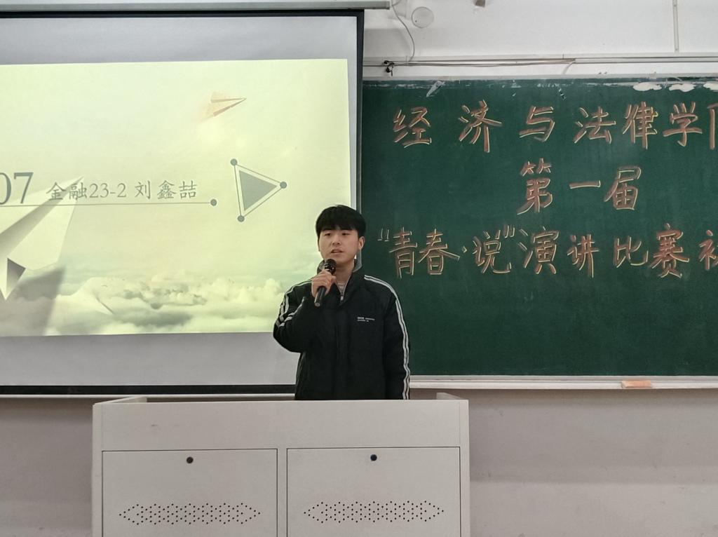 3月27日,经法学院于明德楼大学生活动中心举办第一届“青春·说”演讲比赛。本次活动邀请东方财富证券鞍山营业部总经理吴超出席,经法学院党委书记赵智博、党委副书记张国华、团委副书记张鹏飞、团学骨干以及各年级学生代表近300人参加了本次活动。