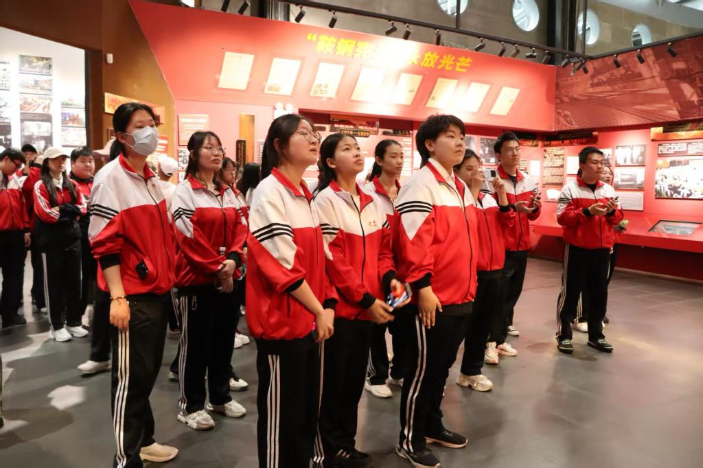 活动当日,师生共同参观鞍钢博物馆。博物馆讲解员从馆内的巨幅画雕讲起,依次向大家介绍“钢铁摇篮”“火红年代”等11个主题展区,她生动地讲述了鞍钢从建国前在艰难困苦中筚路蓝缕、艰苦创业,到逐步成长为国家钢铁工业坚实支柱的发展历程。同学们在参观过程中,全神贯注地凝视着每一件展品,仔细阅读着每一段文字说明。同学们从一件件带着岁月痕迹、略显斑驳的实物展品,到一幅幅珍贵无比的历史照片中,真切感受到了鞍钢人在不同历史时期所展现的艰苦奋斗、勇于创新的精神品质。