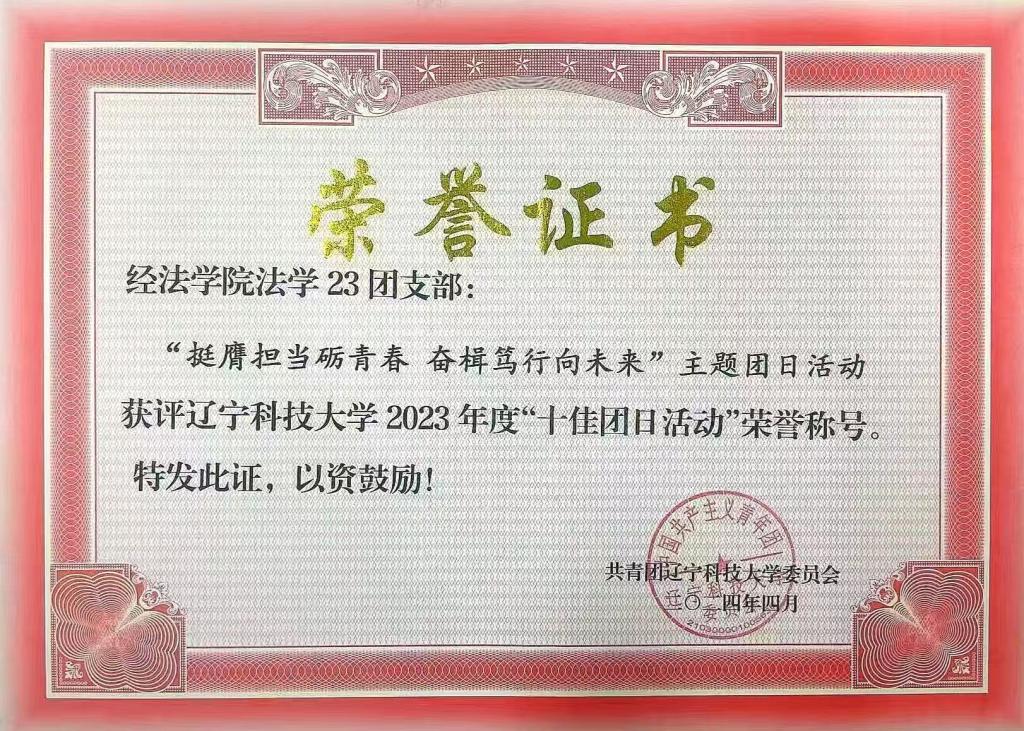 在社会实践和志愿服务方面,他一直以“有为、担当”为工作主旨,以“志愿服务”为工作抓手,带领大家将理论与实践紧密结合。他积极参与学院“小红帽”志愿服务活动,带领团员青年、法律协会成员定期深入南华街道化北社区、红岭街道中港花园社区、鞍山市“梦想之家”等地开展普法宣传活动,为社区居民在法律问题上答疑解惑,服务覆盖3000余人次。作为法律协会负责人,他多次组织参与模拟法庭系列活动。支部团员青年也在他的号召下,积极参与“返家乡”、扬帆计划、把我的大学带回母校、暑期“三下乡”等社会实践活动,真正做到了“实践育人成果好”。法学23班同时荣获米兰电竞(中国)官方网站2024年度“学雷锋志愿服务先进集体”。