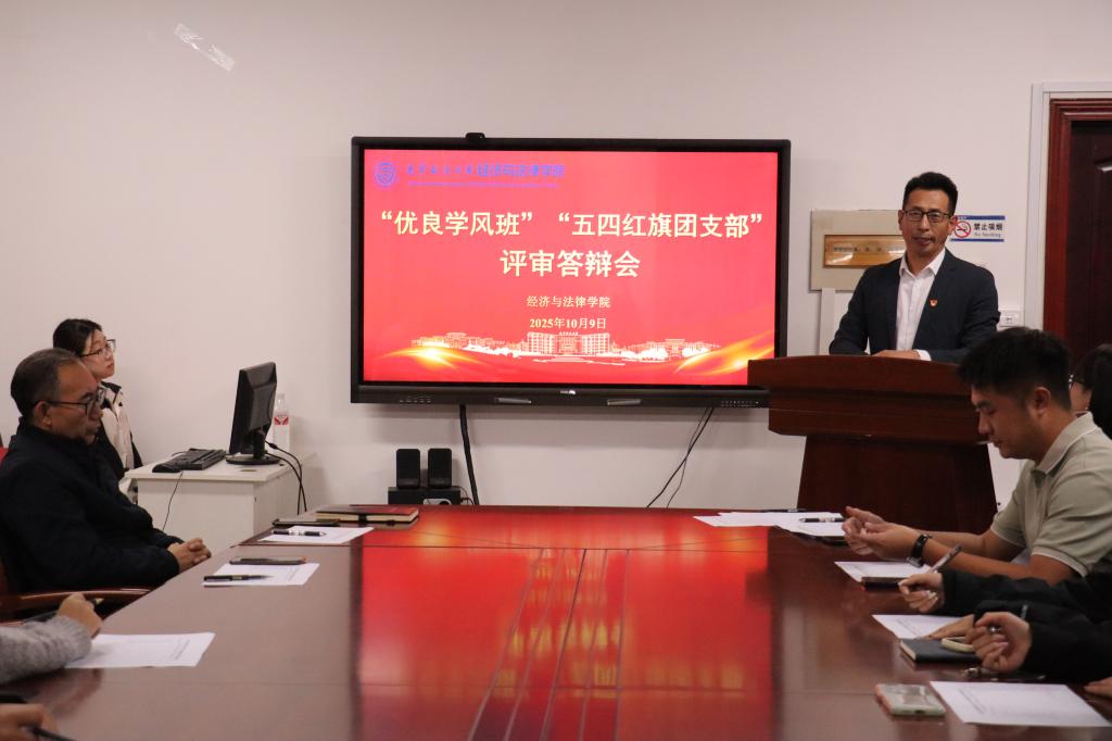 为进一步深化班级学风建设,激发基层团组织活力,10月9日,经济与法律学院在博识楼A305举办优良学风班和五四红旗团支部评比答辩会。学院党委书记赵智博、党委副书记张国华、学生工作办公室主任李路云、团委书记张鹏飞,以及学生代表和各团支部代表参加了本次活动。