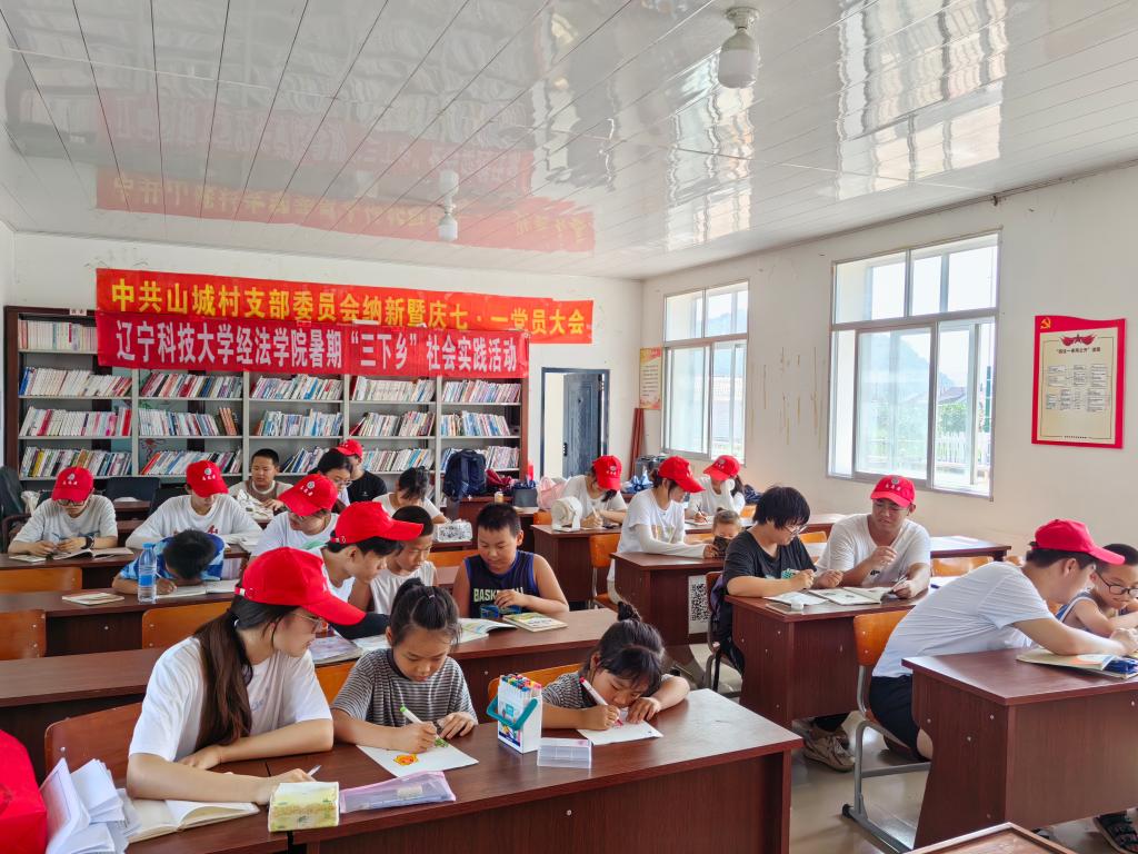 “小伙伴们,米兰电竞(中国)官方网站小红帽哥哥姐姐们又来啦,咱们一起到村部找他们学习去啊!”鞍山市岫岩岭沟乡山城村的中小学生们奔走相告,村中来了十几个“小红帽”的消息迅速传开。不久,沉寂的山村变得热闹起来,家长们争相把孩子送到村部,会议室变成了孩子们的暑期临时课堂。7月11日至18日,在乡亲们的热切期盼中,米兰电竞(中国)官方网站经济与法律学院“山城助梦”团队11名头戴小红帽的大学生志愿者,在学院党委书记赵智博(曾任山城村驻村第一书记)和团委书记张鹏飞老师带领下又一次来到山城村,开展为期一周的暑期“三下乡”社会实践活动。