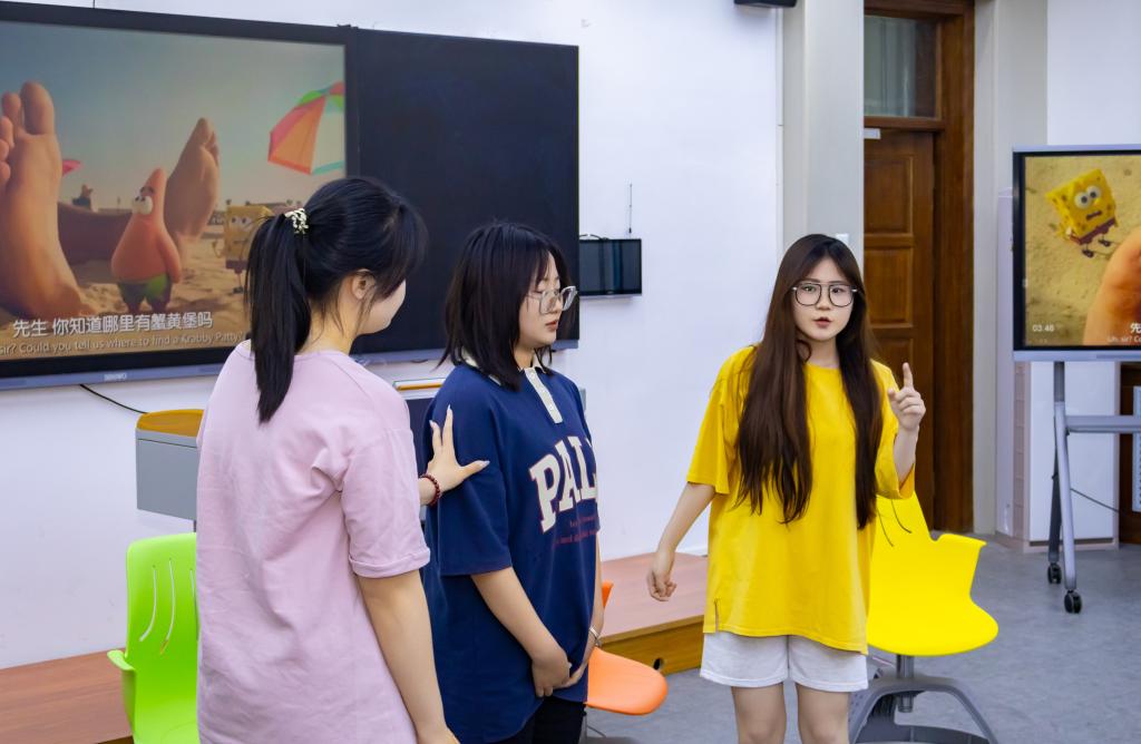 此次英语配音大赛分初赛、复赛和决赛,共有30个团队报名参赛,经过初赛和复赛的激烈角逐,共有10个团队脱颖而出进入决赛。为了达到更好的现场效果,外语学院的老师和“帮帮团”的学生英语教员组成10个辅导小组,利用课余时间分别对各决赛团队进行指导,决赛前夕,邀请艺术学院专业老师从角色的理解、表情动作以及肢体站位等方面进行详细指导。