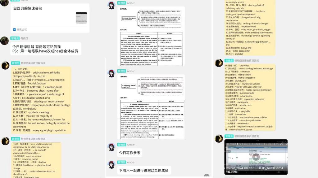 本次暑假线上自习室延续了以往经典的打卡学习、补考辅导和自选教员一对一辅导模式,利用词达人小程序、超星学习通、QQ群、腾讯会议等多种学习平台进行朋辈互动交流。打卡学习模块持续了28天,涵盖大学英语、高等数学和大学物理三个科目;补考辅导模块在打卡科目的基础上又增加了比较热门的Python科目,共10天30次课程;自选教员辅导模块持续了40天,同学们根据自己的需求线上预约心仪的教员,17位学霸教员结合自身优势为同学们提供一对一的针对性辅导,教学相长,大家都收获满满。