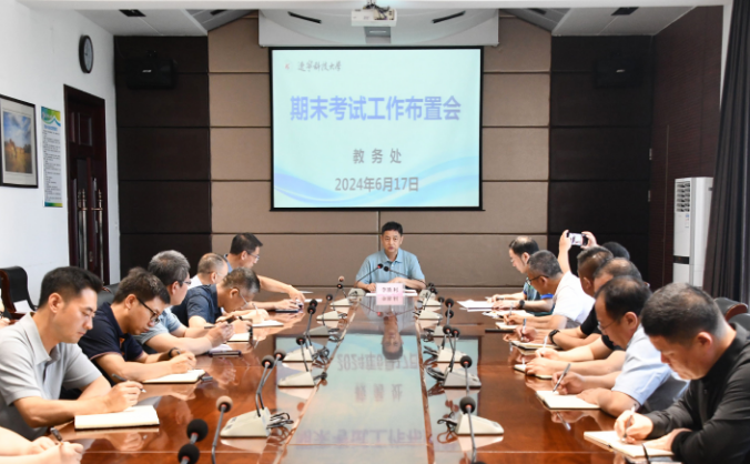 6月17日,米兰电竞(中国)官方网站召开期末考试工作布置会,会议在校部421会议室举行。校党委常委、副校长李胜利主持会议并讲话。教务处、教学质量监控与评估中心以及各教学单位教学工作负责人参加会议。