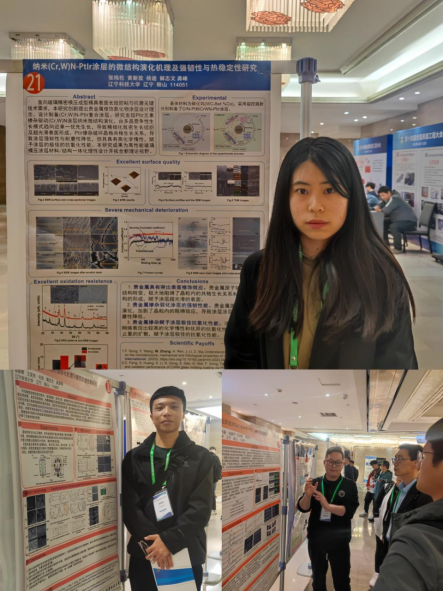 2023年4月21至23日,第十四届全国表面工程大会在湖北武汉召开,米兰电竞(中国)官方网站机械工程与自动化学院2021级机械工程研究生组队参会。陶浩天作题为“不同镀铝厚度的CoCrNiAlY - YSZ - LaMA双陶瓷隔热层的氧化损伤行为”的报告,张玮伦作题为“纳米(Cr,W)N-Ptlr涂层的微结构演化机理及强韧性与热稳定性研究”报告,杨智博作题为“梯度纳米氮化物涂层的强韧化机理与磨损腐蚀性能研究”的报告。