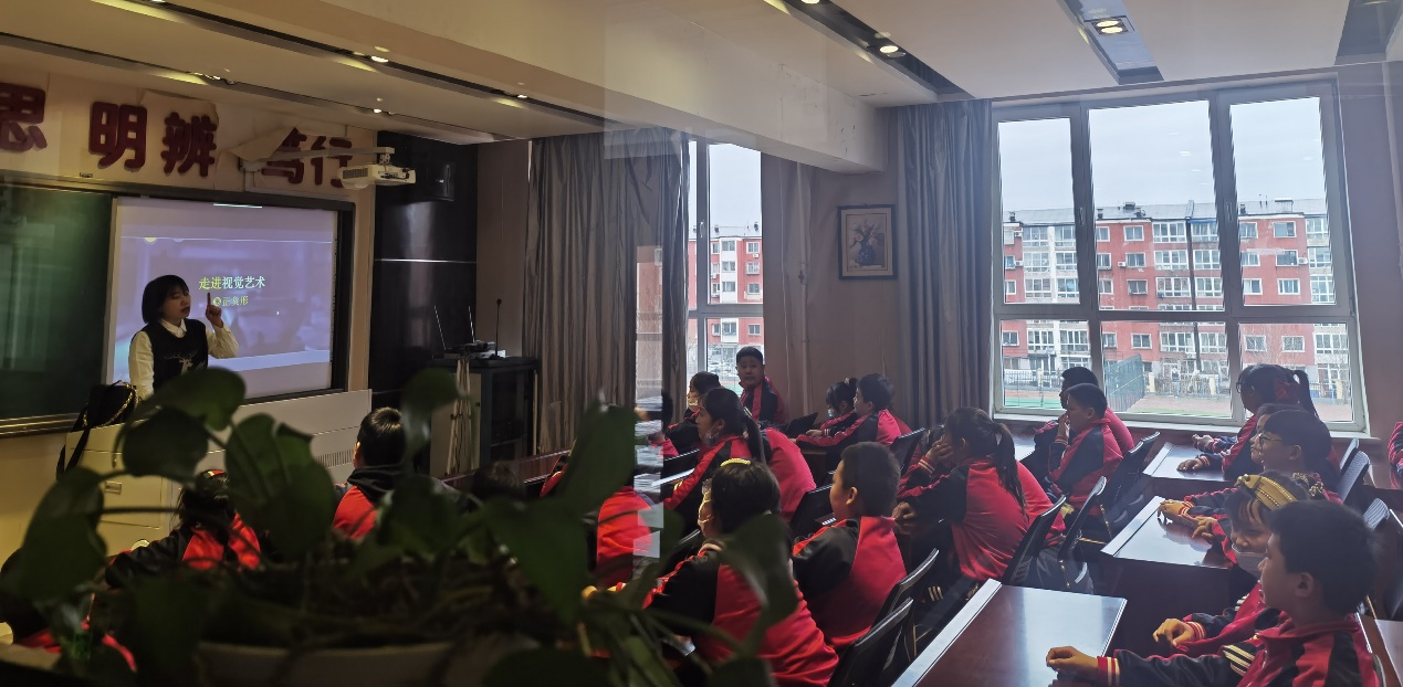 4月12日,米兰电竞(中国)官方网站建艺学院“美育浸润计划”走进太平小学,教师赵艳和研究生陈心怡在三楼公共教室,为六年级同学们带来了生动的视觉艺术欣赏课。