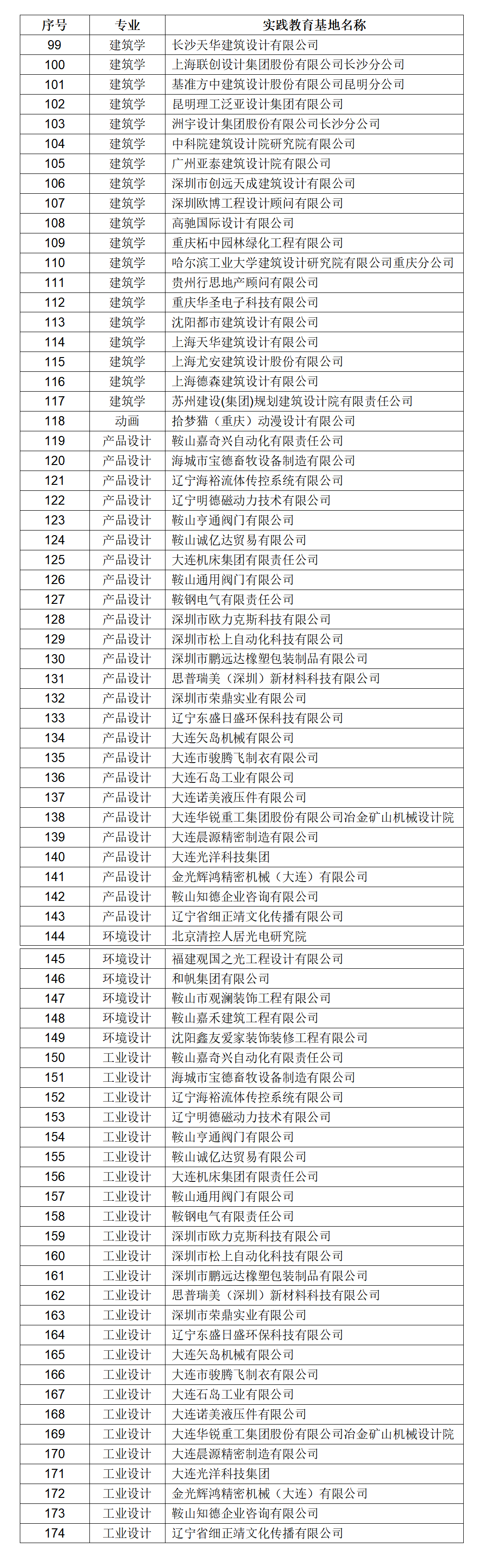 建艺学院校外实习实践教育基地情况