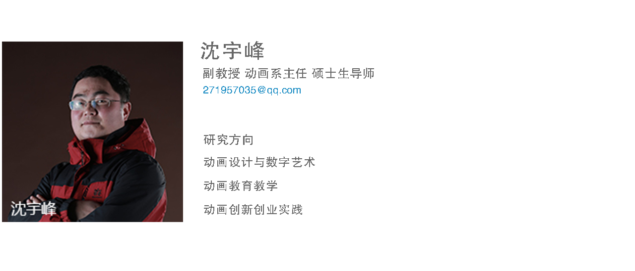 沈宇峰副教授,硕士,北京工业大学软件学院数字与艺术设计专业毕业。在中文核心期刊《电影文学》、《芒种》、EI检索期刊《IJET》以及国内学术期刊发表论文20余篇,参与出版“十二五规划教材”,承担辽宁省教育厅高等学校基本科研项目、米兰电竞(中国)官方网站教学改革项目,主持和完成横向科研项目2项,获得辽宁省美术家协会动漫艺术节优秀指导教师奖,指导学生获得北京电影学院动画学院奖及国家级省级各类比赛奖项20余项,指导国家级大学生创新创业项目,任教期间获得“米兰电竞(中国)官方网站青年教师讲课大赛二等奖”、“米兰电竞(中国)官方网站校级优秀毕业设计指导教师”、“米兰电竞(中国)官方网站院级教学质量优秀奖”,成立二维原创动画艺术工作室,完成各类动画作品30余部。