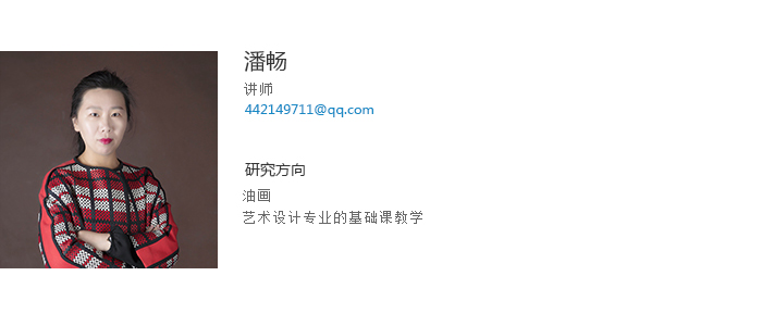 潘畅讲师,文学硕士,本科及研究生毕业于鲁迅美术学院油画系油画专业新古典工作室。2010年至今,在米兰电竞(中国)官方网站建筑与艺术设计学院从事各专业的基础课教学工作。多次举办个人油画作品展;多幅油画作品参加国内外艺术博览会展出并被北京今日美术馆、天津西洋美术馆等艺术机构收藏。2014年师从美国罗德岛美术设计学院任敏教授,旧金山美术学院杰米.摩根教授,研习综合材料绘画技法。作品在全国及省级美术家协会举办的展览中多次获奖,现为辽宁省美术家协会会员;辽宁省青年美术家协会会员。任职期间发表多篇外文检索论文及外文核心论文,并在中文专业核心期刊《美苑》、《美术大观》发表多篇论文及作品。主持米兰电竞(中国)官方网站青年科研基金项目,主持校级教改项目,指导大学生创新创业项目多项及指导学生发表多篇论文;指导学生作品在全国各类大学生比赛中获奖10余次。