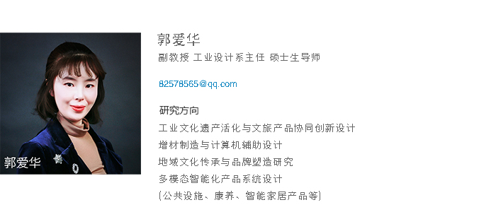 郭爱华,韩国庆一大学设计学博士,北京理工大学设计艺术学硕士(本硕博均工业设计专业)。曾获米兰电竞(中国)官方网站校级教学质量优秀奖两次;主持校级教改项目及教育科学研究课题共计十余项、省级教改项目主要完成人、主持及参与省校级教改成果奖一二三等奖共计十余项;曾获全国高校教师(本科)微课教学大赛辽宁省一等奖、全国多媒体课件大赛二等奖三等奖各一项、辽宁省教育软件大赛三等奖两项、校多媒体课件教学大赛一等奖、校优秀教案大赛一等奖二等奖;主编出版高等院校工业设计类“十二五”规划教材一部;主持中国科协青年智库成果、辽宁省社科联资助项目、辽宁省教育厅项目、鞍山市社科联项目等十余项;参与辽宁省自然科学基金项目、省精品资源共享课建设、省教育厅项目、市级科学计划项目等十余项;发表检索、核心论文多篇、教学研究论文多篇;授权实用新型专利和外观设计专利十余项;指导国家级省级大创项目若干、获校级大创年会一等奖两次二等奖一次;指导学生在A类学科竞赛中获一二三等奖若干、获辽宁省大学生工业设计大赛优秀指导教师。