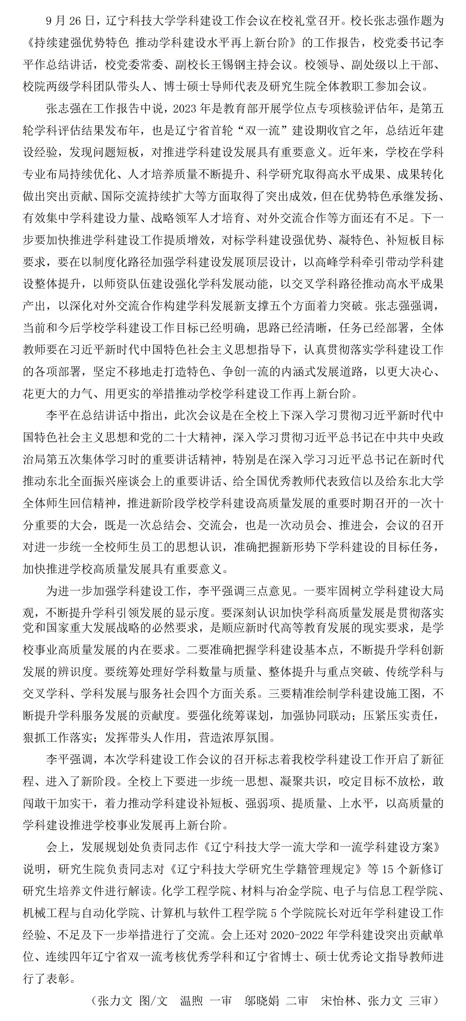 米兰电竞(中国)官方网站召开学科建设工作会议