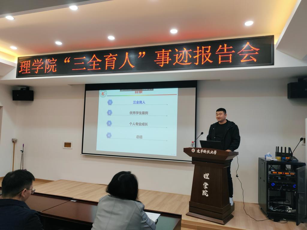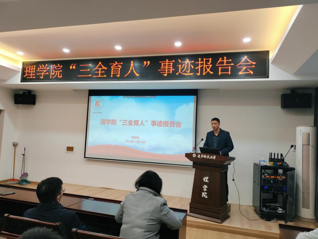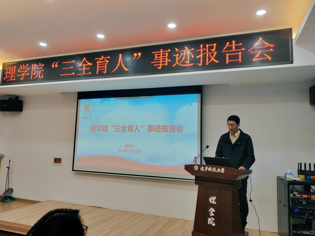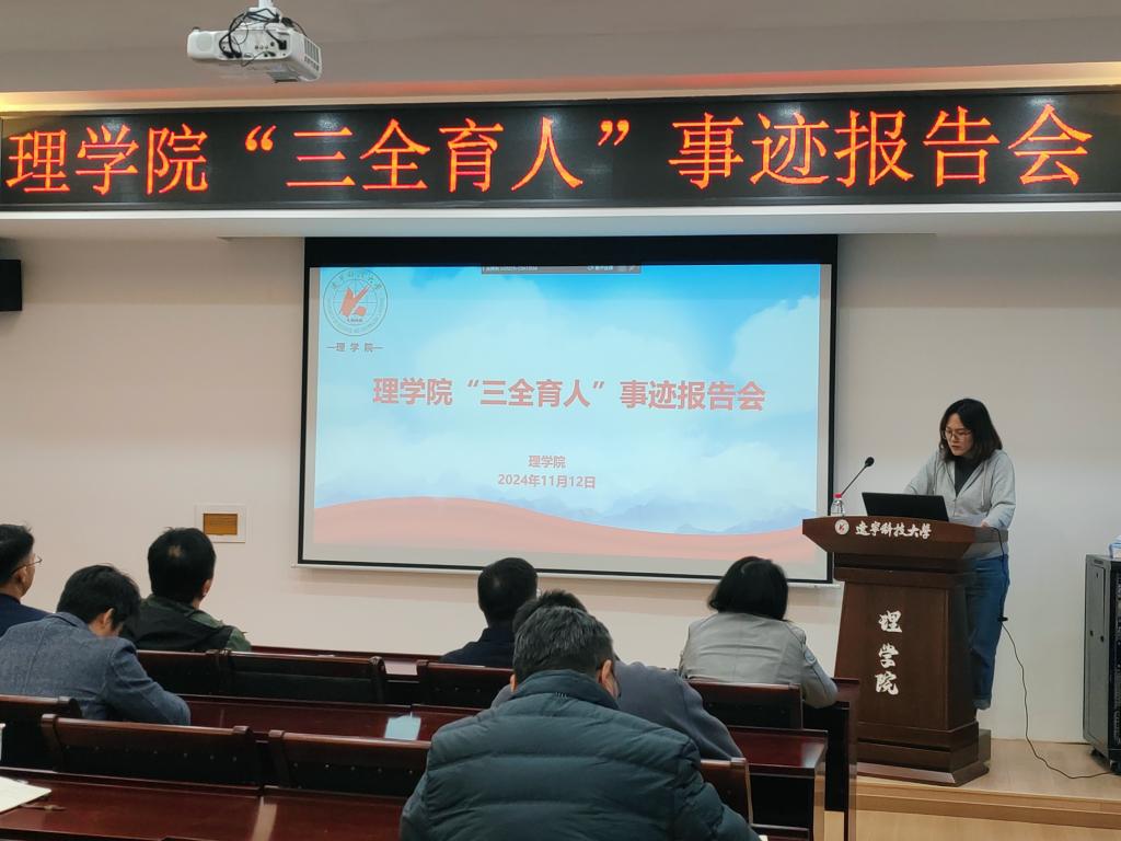 2024年11月12日,理学院在B315会议室召开“三全育人”事迹报告会,学院党委书记张春霞主持会议,牛冰冰、王彪、陈洋、刘昊作为“三全育人”典型楷模,从“十大育人体系”的各方面做了交流发言,全院教职工参加了报告会。
