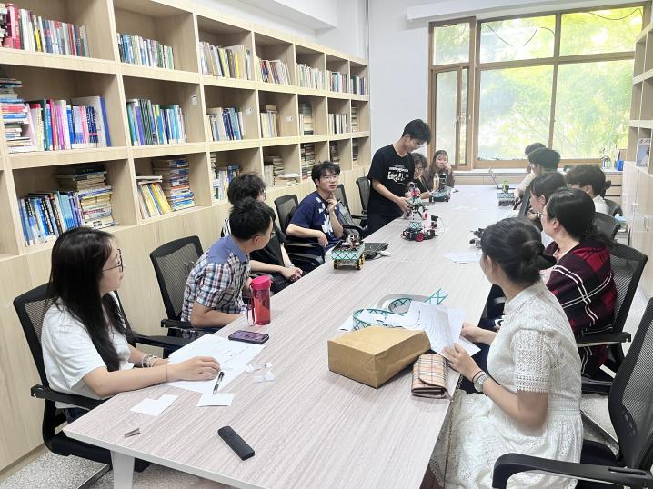 6月10日下午,进行了实物竞技赛板块的评审,参赛的7支队伍围绕组委会提出的智能小车的激光对抗和大深径比微孔参数的光学无损伤测量两道题目展开角逐。每支参赛队伍在讲解作品后进行现场演示。随后,智能小车参赛队伍之间的PK赛将赛事推向高潮。参赛小车需在复杂赛道上完成自主避障、路径识别、目标抓取等任务,考验硬件设计、算法优化和团队协作能力。各支参赛队伍通过PK赛,继续查找自身不足,后续再对小车做最后调试。
