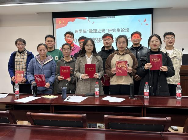 为丰富学术交流形式,营造良好的学术科研氛围,切实提高研究生的学术水平和综合素质。理学院“数理之光”研究生论坛于2023年10月21日在明贤楼B315举办了一年一度的研究生学术报告会。本次报告会共遴选了12名优秀的研究生为大家做学术报告,理学院教师张大庆、黄胜绢、卢飞龙、王彪、王健担任评委。