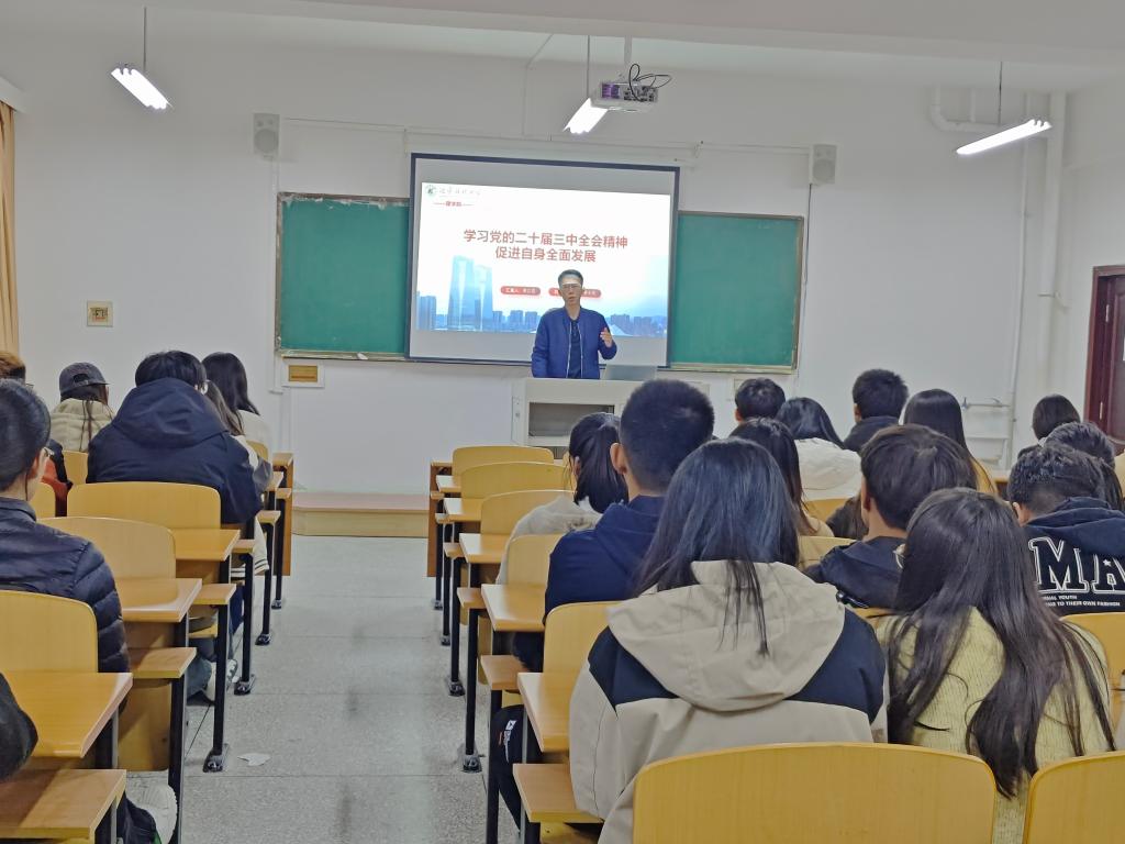 在“学习党的二十届三中全会精神”的主题班会中,三位辅导员老师带领学生深入探索会议精髓,阐释其重大意义与全面深化改革的指导思想,引导学生将个人思想与行动统一至党的最新理论成果上,确保精神实质内化于心、外化于行。