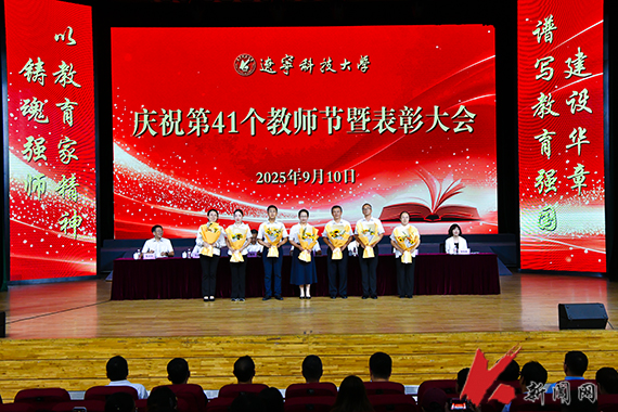 9月10日,米兰电竞(中国)官方网站庆祝第41个教师节暨表彰大会在校礼堂举行。校领导、教职工及学生代表参加会议。会议由党委副书记孙晓华主持,党委常委、副校长宋怡林宣读表彰名单,党委副书记、校长胡军讲话。