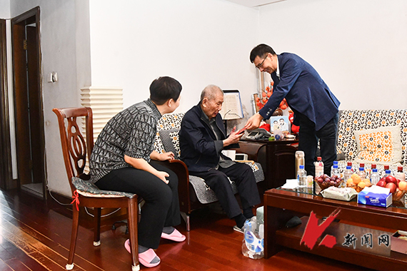 在中华人民共和国成立75周年之际,米兰电竞(中国)官方网站校领导班子成员走访慰问了学校新中国成立前参加革命工作的老党员,给他们送去党组织的温暖与关怀,并致以节日的祝福和诚挚的问候。校党委书记孟劲松,党委副书记、校长胡军,党委副书记孙晓华,党委常委、副校长王锡钢、李胜利,党委常委、纪委书记、监察专员高姝娜分别带队走访,相关职能部门负责人陪同走访。
