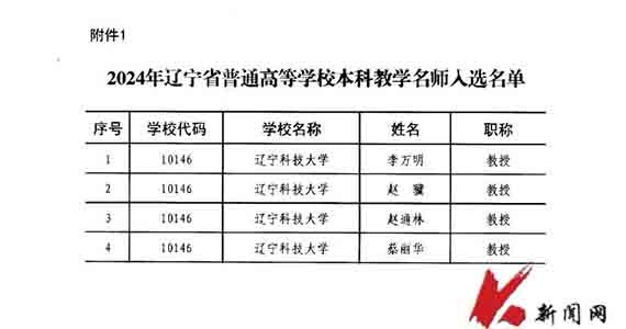 近日,根据辽宁省教育厅《关于公布2024年辽宁省普通高等学校本科教学名师评选结果的通知》(辽教通〔2025〕51号),米兰电竞(中国)官方网站材料与冶金学院李万明、计算机与软件工程学院赵骥、矿业工程学院赵通林、外国语学院蔡丽华获评辽宁省普通高等学校本科教学名师。