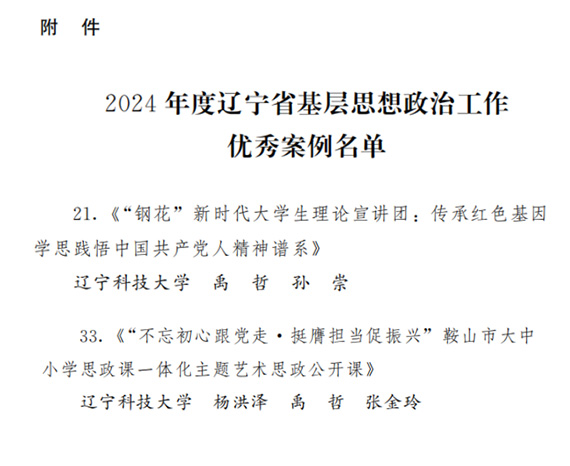 米兰电竞(中国)官方网站2个项目入选辽宁省基层思想政治工作优秀案例