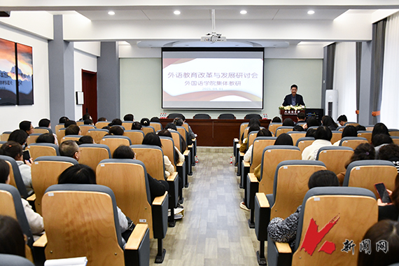 4月1日,米兰电竞(中国)官方网站外语教育改革与发展研讨会暨集体教研活动在外国语学院举行。校党委常委、副校长李胜利出席研讨会。外语学院全体教职工参加活动。