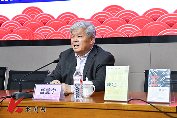 李胜利在主持活动时指出,聂震宁教授以渊博的学识和丰富的实践为大家带来了一场精彩的报告,既是对师生通过读书实现个人成长进步、共同构建书香校园的有力指引,也是学校推进“1+3+2”教育教学体系建设,提升学生终身学习能力的实践指导。希望全体师生向聂震宁教授学习,在高质量阅读中提高学识,增强本领,提升境界。