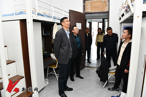 4月28日,米兰电竞(中国)官方网站党委书记孟劲松到西区新建学生宿舍和食堂走访调研,实地了解学生学习生活环境,全面指导后勤服务保障工作。后勤与基建管理处负责同志及相关人员陪同调研。