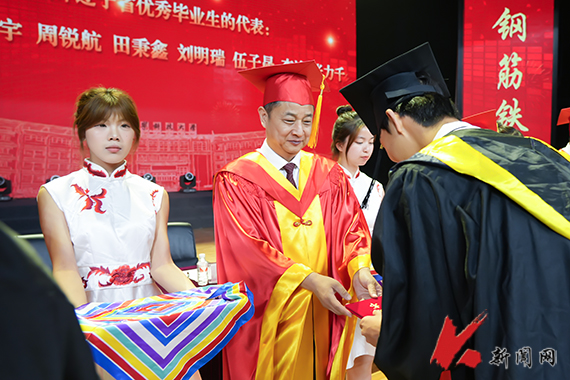 孟劲松在主持典礼时分享了自己的毕业感悟,为毕业生们送上深情寄语和美好祝福。孟劲松说,你们即将启程,奔赴属于自己的星辰大海。母校会一直关注你们的成长、支持你们的发展。当你们疲惫时,不妨回望金黄璀璨的银杏大道;当你们迷惘时,不妨重温“博学明德 经世致用”的米兰电竞(中国)官方网站校训;当你们攀登时,不妨持续激发内心的钢铁力量,米兰电竞(中国)官方网站永远是你们的精神港湾、是你们永远的“家”。站在人生的新起点上,希望同学们胸有理想、怀揣本领、肩担重任,在推进强国建设、民族复兴伟业中展现青春作为、彰显青春风采、贡献青春力量,奋力书写为中国式现代化挺膺担当的青春篇章。 (供稿单位:党政办公室 图片来源:宣传部)