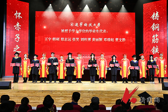 校党委书记孟劲松主持毕业典礼。校党委副书记、校长胡军致辞,并宣读2025届毕业生学位授予决定。校党委副书记孙晓华宣读辽宁省优秀毕业生表彰决定。校领导为获得辽宁省优秀毕业生称号的毕业生代表颁发荣誉证书,为毕业生代表拨流苏,颁发毕业证、学位证、校友联络大使聘书,赠送毕业纪念品。校学生会执行主席佟其聪、采矿2021.2班本科毕业生李华哲、化学工程与技术专业博士毕业生武帅、材料与冶金学院教师艾新港分别代表在校学生、本科生毕业生、研究生毕业生和教师发言。上海嘉德环境能源科技有限公司董事长兼总经理李东作为优秀校友代表送上毕业祝福。