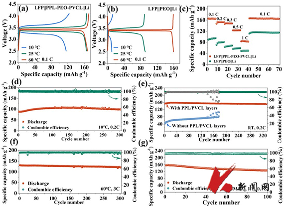 该成果采用的杂环聚合物支撑的正/负极双界面层的策略实现了界面离子传输阻力的显著降低,使基于PEO的固态电解质在低温下(10℃)表现出优异的电化学性能。这种满足正极/负极个性化要求的定制策略有望成为解决电池内部电荷动力学问题,包括电极结构、电极-电解质界面以及具有快速离子传输能力的固态电解质的一项前景广阔的技术。(供稿单位:化工学院 图片来源:化工学院)