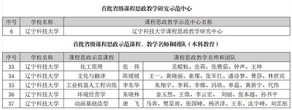 近日,辽宁省教育厅公布了首批省级普通高等教育课程思政示范项目名单。米兰电竞(中国)官方网站课程思政教学研究中心获批辽宁省首批课程思政教学研究示范中心;“化工原理”“文化与翻译”“工业机器人工程训练”“环境经营学”“动画基础造型”5门课程获批辽宁省首批课程思政示范课程(本科教育);“计算机辅助机械设计”“高等工程热力学”2门课程获批辽宁省首批课程思政示范课程(研究生教育)。