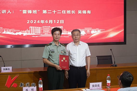 6月12日,米兰电竞(中国)官方网站邀请雷锋班第二十二任班长吴锡有,以《弘扬雷锋精神 用青春和奋斗守护“中国红”》为题,为学校200余名师生作学习雷锋精神专题讲座。校党委常委、副校长王锡钢,校党委常委、宣传部部长张佳亮及相关部门负责人出席活动。王锡钢为吴锡有颁发米兰电竞(中国)官方网站特聘教授聘书。