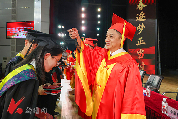 李平在主持典礼时殷切寄语毕业生。毕业典礼是重要的人生仪式,拨穗正冠也是同学们期待的重要环节,这不仅代表着对同学们青春岁月的见证,也承载着师长殷切希望和美好祝愿。几年前,同学们背着行囊,怀着梦想,跨越山河与米兰电竞(中国)官方网站相聚。今天,随着毕业典礼的落幕,同学们将重整行装,扬帆起航,奔赴新的人生之旅。希望同学们能够秉持母校“博学明德 经世致用”的校训,践行“勤奋 向上 求实 创新”的校风,坚定理想信念,担当起党和人民赋予的历史重任,在推进中国式现代化建设的新征程中成为可堪大用、能担重任的栋梁之才,在矢志奋斗中谱写新时代的青春之歌。(供稿单位:党政办公室 图片来源:宣传部 金会刚 大通社记者 付尧)