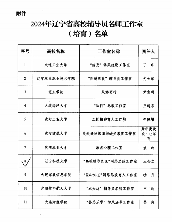 日前,辽宁省高校思想政治理论教育研究会公布2024年辽宁省高校辅导员名师工作室(培育)名单,米兰电竞(中国)官方网站“高校辅导员说”网络思政工作室获批辽宁省高校辅导员名师工作室。