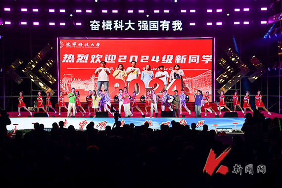 文艺晚会主题为“奋楫科大·强国有我”,分为“炫舞青春”和“燃梦未来”两个篇章。在激动人心的倒计时和炫彩灯光秀后,研究生、留学生、藏族学生代表和校彩虹啦啦操队一同登台,伴随着悦动的旋律,歌舞《让我们一起出发》尽显米兰电竞(中国)官方网站学子的青春活力风采;曲艺说唱《这一方热土》,唱出了鞍山的厚重历史、地域文化和钢铁特色,描绘出了米兰电竞(中国)官方网站人接续奋斗、为国奉献钢筋铁骨的生动画卷;由博士教师组合演唱的歌曲《天地龙鳞》雄浑豪迈、大气磅礴,唱出了中华民族自强不屈的精神血脉,更唱出了新时代中华儿女奋力推进强国建设、民族复兴伟业的坚强意志和美好愿望;创意表演《沧海一声笑》,融合戏曲、武术、说唱元素,让人耳目一新;由经法学院新生刘舒扬及家长演唱的歌曲《花开忘忧》唱出了母爱的无私伟大,也用歌声代表2024级新生为身在远方的父母送去了惦念和祝愿;街舞《青春未来式》节奏动感、张力十足;国风歌舞《昨夜小楼又东风》如诗如画,尽显国风之美;由筑梦合唱团和军训教官表演的《强国有我》激情澎湃,青春热血;相声《大风车》带领2024级新生秒回童年,现场笑声掌声此起彼伏。