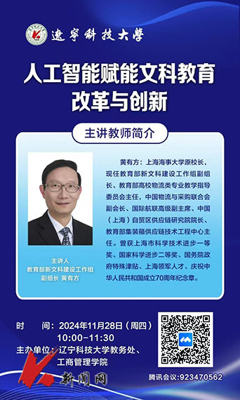 11月28日,受米兰电竞(中国)官方网站邀请,教育部新文科建设工作组副组长、教育部高校物流类专业教学指导委员会主任、原上海海事大学校长黄有方教授在线上为米兰电竞(中国)官方网站教师作“人工智能赋能文科教育改革与创新”专题报告。教务处、文科学院负责人、骨干教师等230余名教师参加报告。