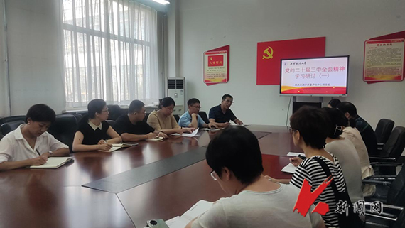 经济与法律学院党委组织召开党的二十届三中全会精神专题学习研讨会。会议由学院党委书记赵智博主持,学院副科级以上领导干部、党支部书记、系主任和民主党派教师代表参加会议。